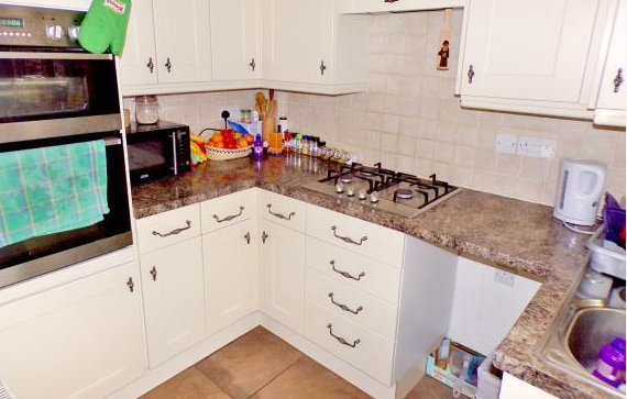 Kitchen6'2" x 8'4" (1.88m x 2.54m). Double glazed back door, double glazed uPVC window facing the rear, radiator, roll top work surface, wall and base units, stainless steel sink and drainer with mixer tap, electric oven, electric hob and over hob extractor.